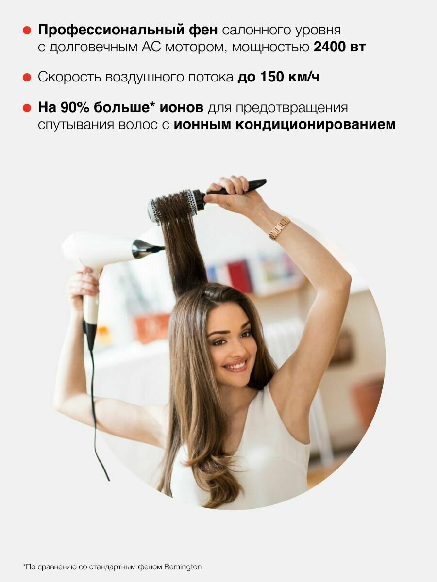 Фен для волос Remington PRO-Luxe Dryer AC9140, 2400 Вт, АС мотор, ионное кондиционирование, 3 температурных и 2 скоростных режима, режимы "PRO+ Style shot" и "True Cold"