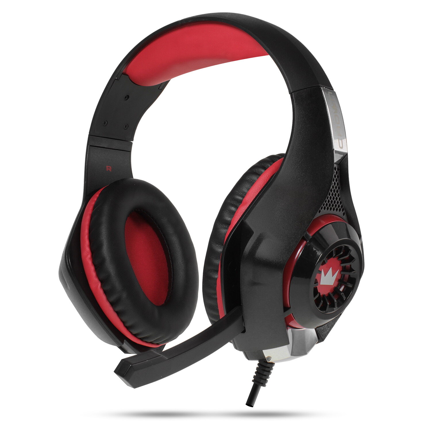 CROWN CMGH-101T Black&red (Подключение jack 3.5мм 4pin+ адаптер 2*jack spk+mic,Частотныи? диапазон: 20Гц-20,000 Гц ,Кабель 2.1м,Размер D 250мм, регулировка громкости, микрофон на ножке)