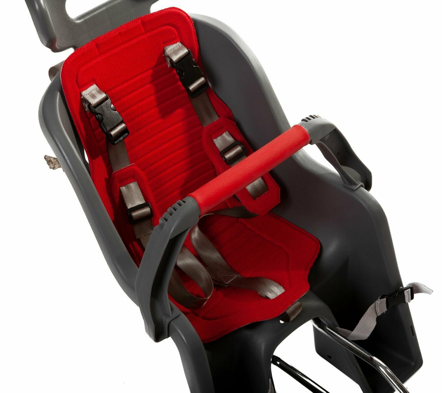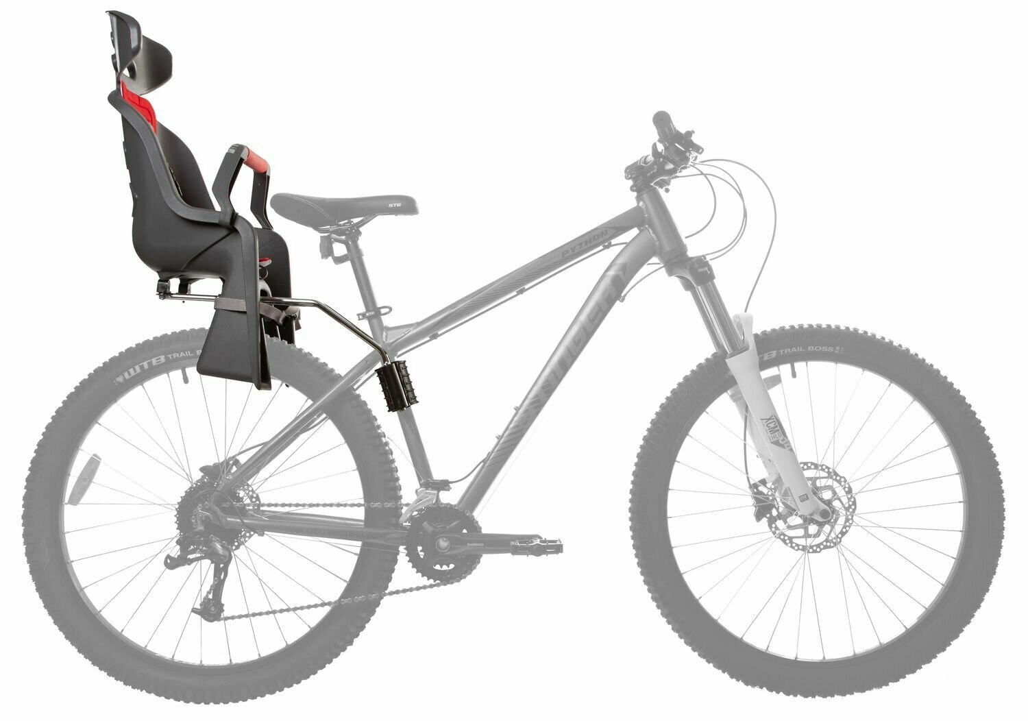 | Минусы: | Очень короткая вилка крепления кресла к велосипеду. Ребенок сидит сразу за сидушкой велосипедиста. При езде рукоятка детского кресла упирается в спину велосипедиста.