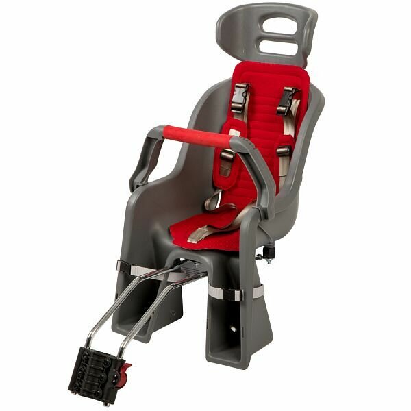 Велокресло детское Sunny Wheel заднее, в цветной коробке, SW-BC-137, серое с красным текстилем