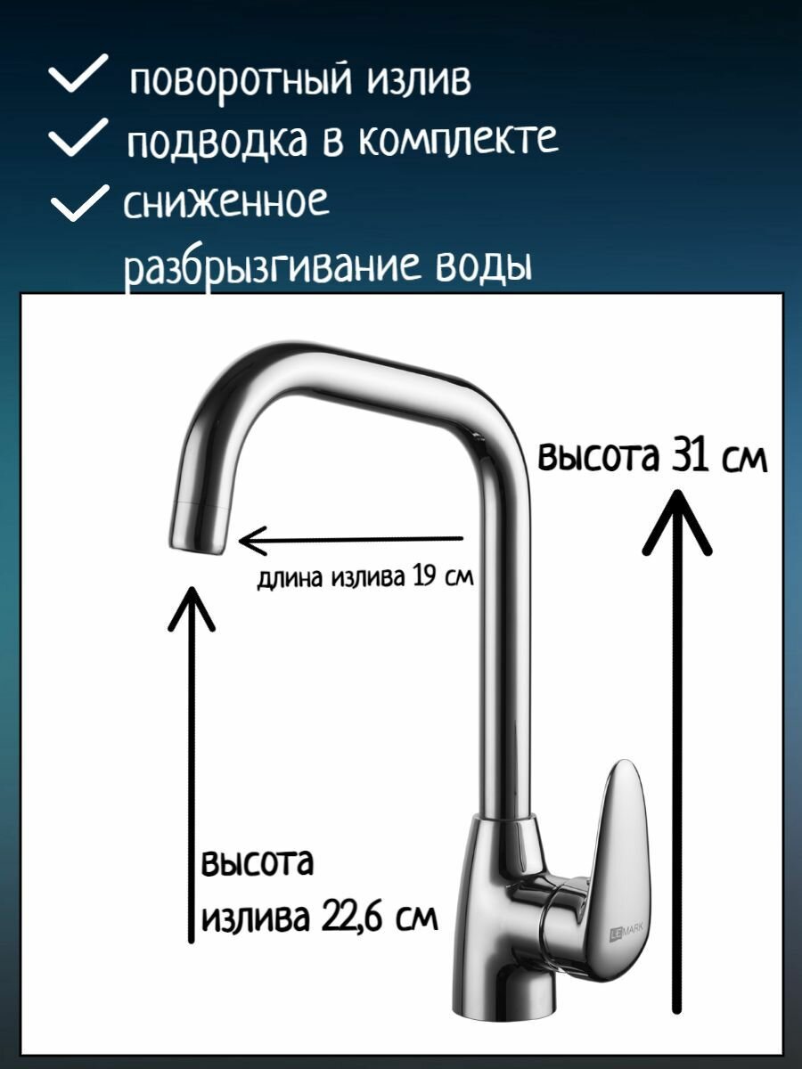 Смеситель для кухни LEMARK Pramen LM3355C однорычажный с высоким поворотным изливом