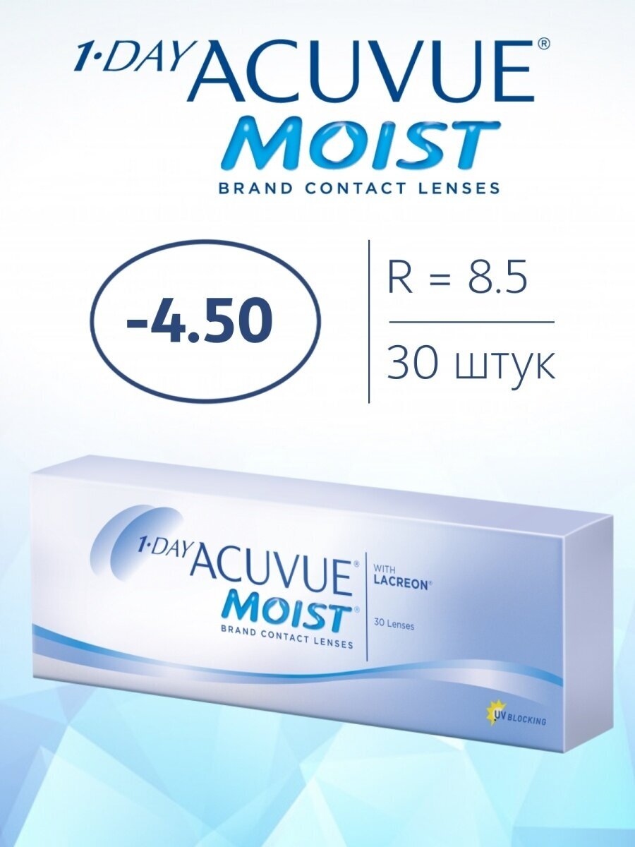 Контактные линзы 1-Day Acuvue Moist, 30 шт., +4.50, R:8,5, режим ношения:дневной