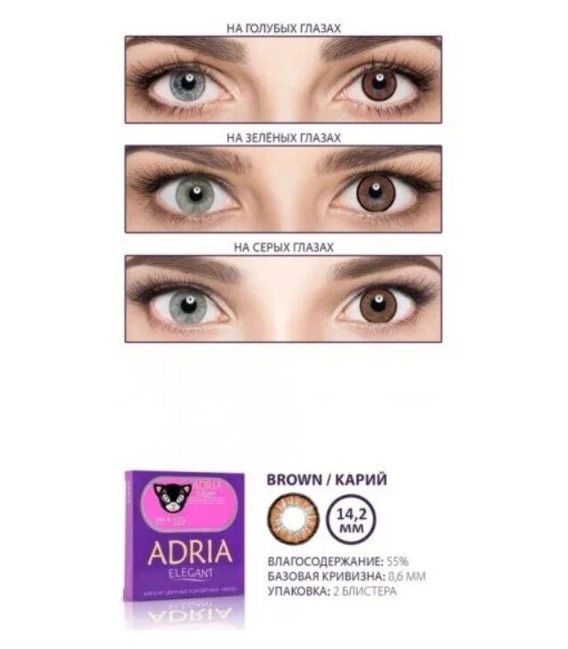 Контактные линзы цветные ADRIA, Adria Elegant color, Квартальные, BROWN, -2,50 / 14,2 / 8,6 / 2 шт.
