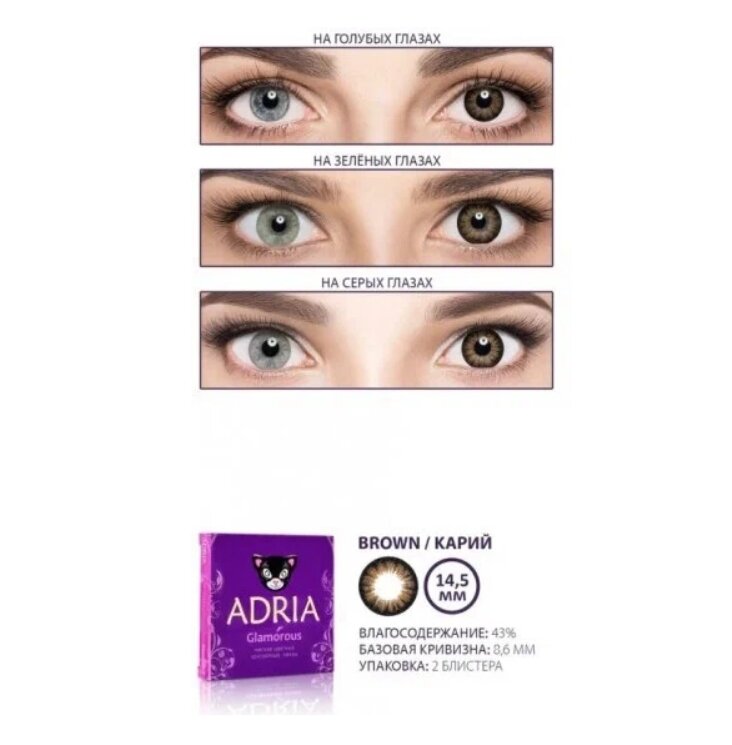 Ниже Вы можете прочитать отзывы на Контактные линзы ADRIA Glamorous, 2 шт., R 8,6, D 0, brown, ознакомится с подробными характеристиками, посмотреть интересные обзоры и фотографии на Контактные линзы ADRIA Glamorous, 2 шт., R 8,6, D 0, brown.