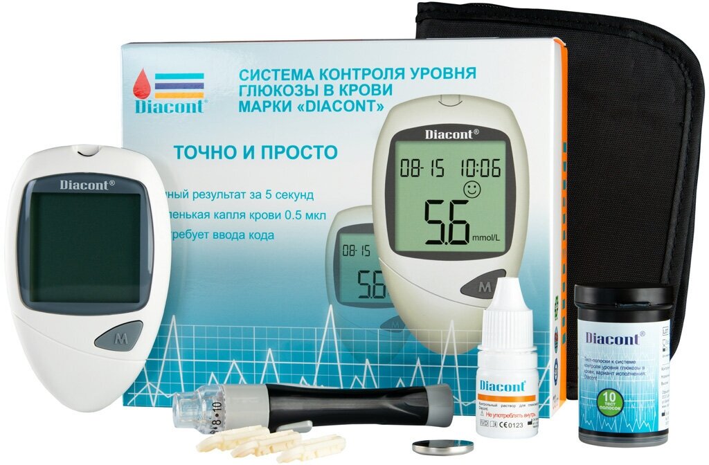 Глюкометр Система контроля уровня глюкозы в крови Diacont 2598, 1594404