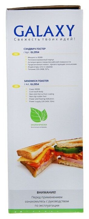 Сэндвич-тостер Сэндвич- тостер 800 Вт, Galaxy GL 2954