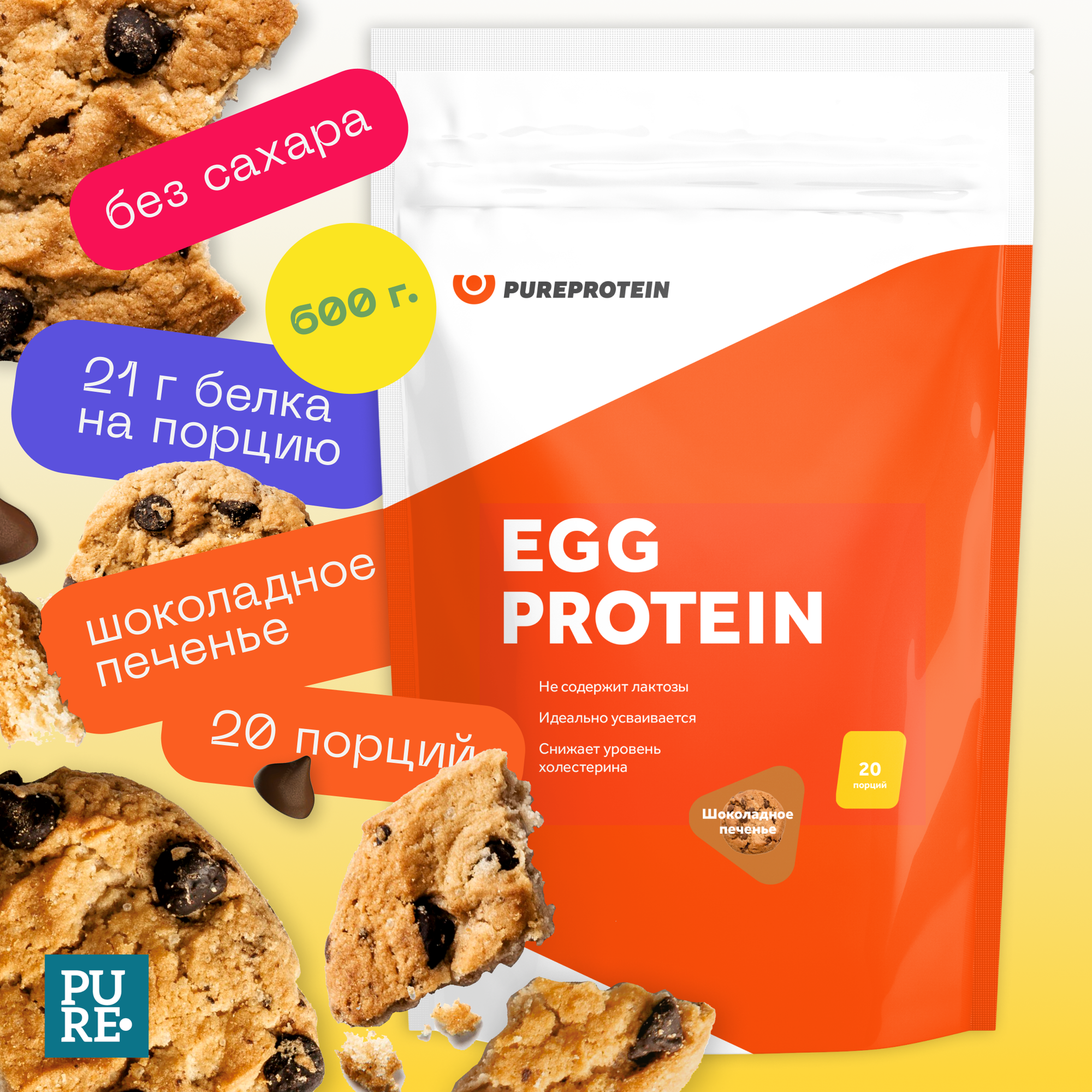 Купить Протеин Pureprotein Pure Protein Egg Protein - Шоколадное печенье 600 г