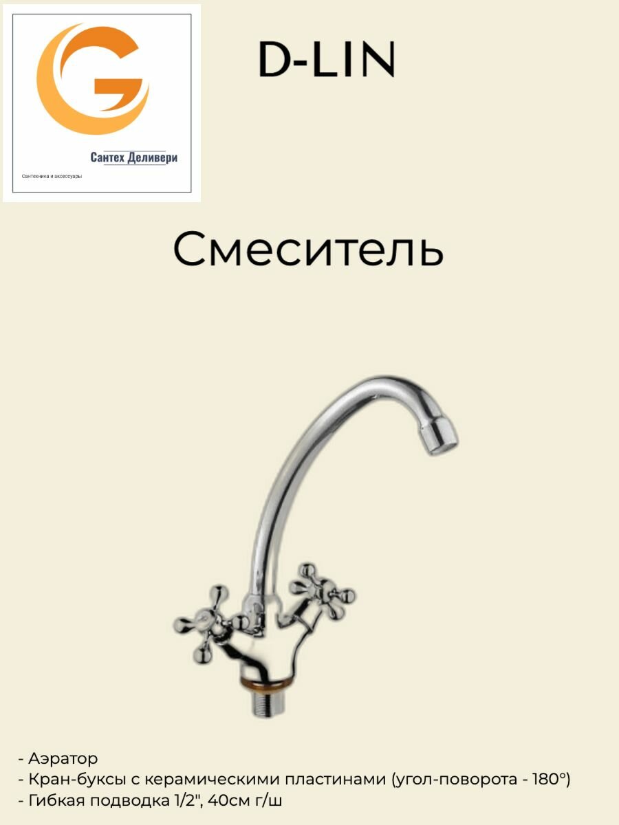 Смеситель для кухни D-Lin D153810-g, хром .