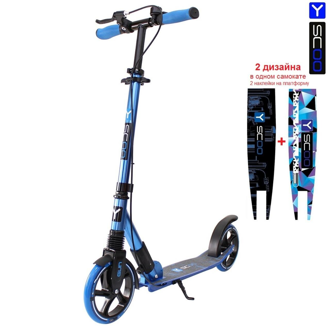 Y-SCOO Самокат RT 205 GUN с ручным тормозом, синий