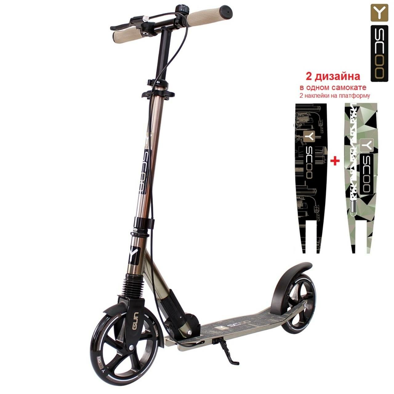 Y-SCOO Cамокат Chicago Gun 205 с ручным тормозом, бронзовый, 8065
