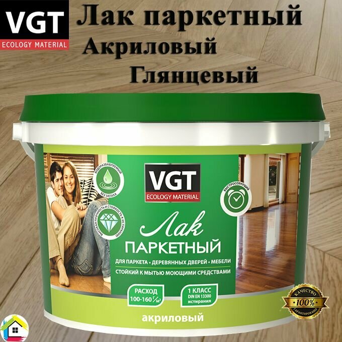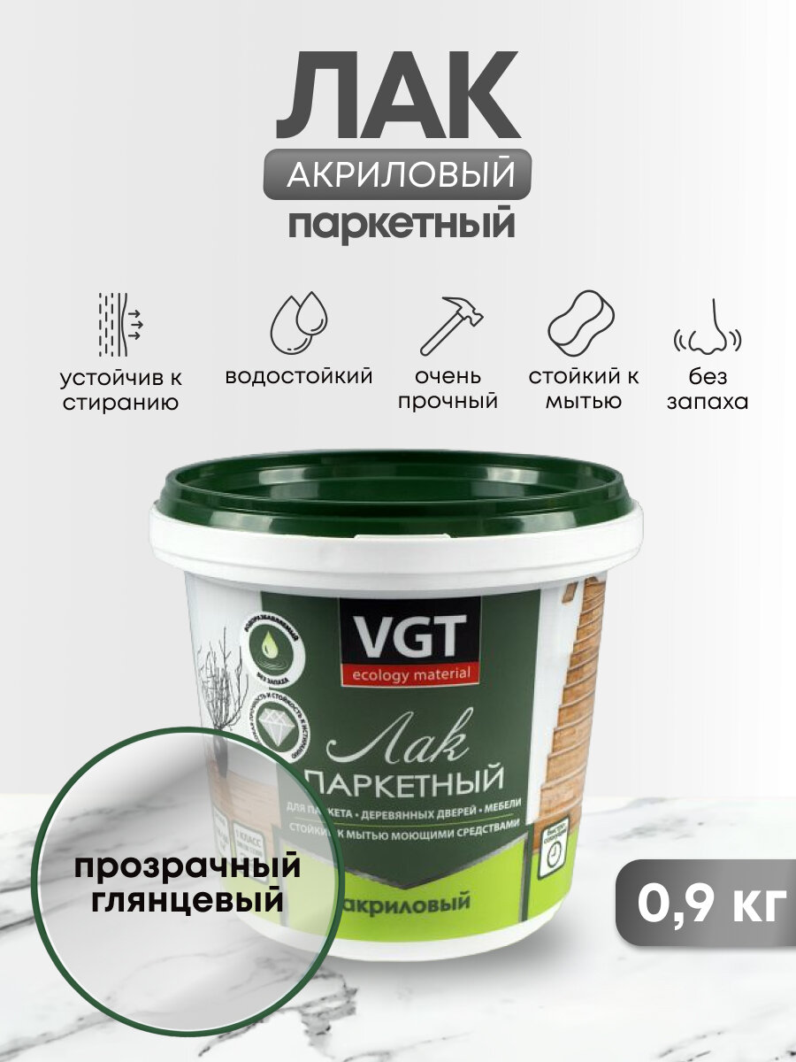 ВГТ лак по дереву акриловый паркетный глянцевый (0,9кг) / VGT лак по дереву акриловый паркетный глянцевый для пола и мебели внутри помещения (0,9кг)