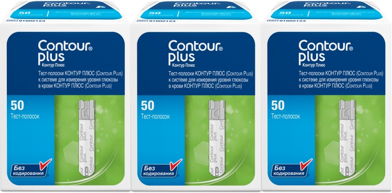 Тест-полоски контур плюс к системе измерения уровня глюкозы контур плюс №50 набор 3 упаковки