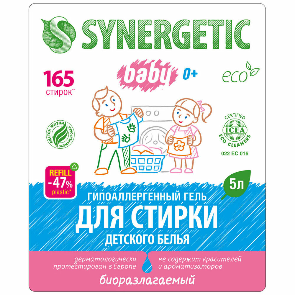 Synergetic Концентрированный гель Synergetic для стирки детского белья, гипоаллергенный, 5 л
