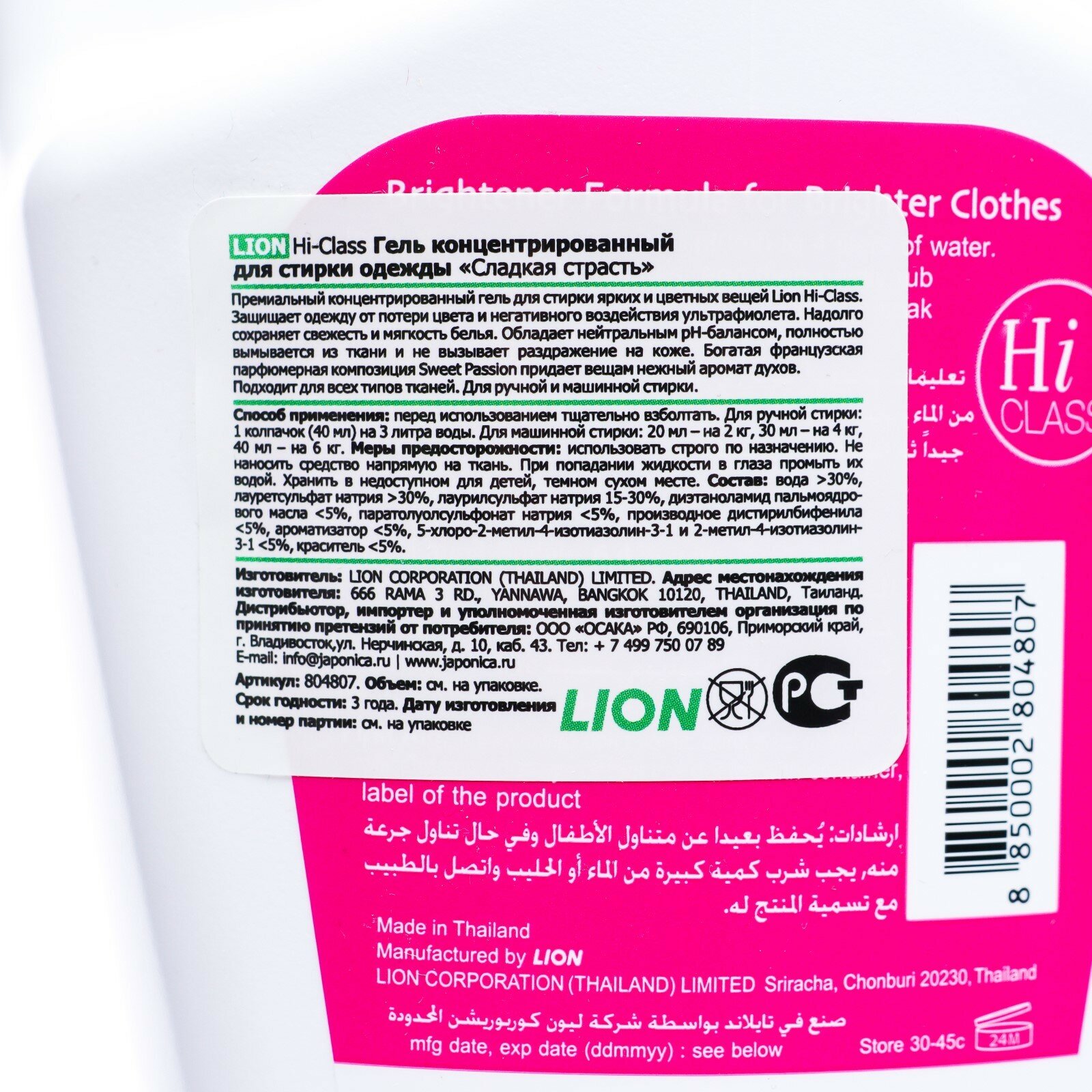 Жидкое средство для стирки Lion Hi Class «Сладкая страсть», гель, универсальное, 1 л