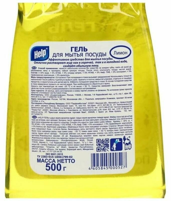 Купить Help Гель для мытья посуды Лимон, 0.5 л