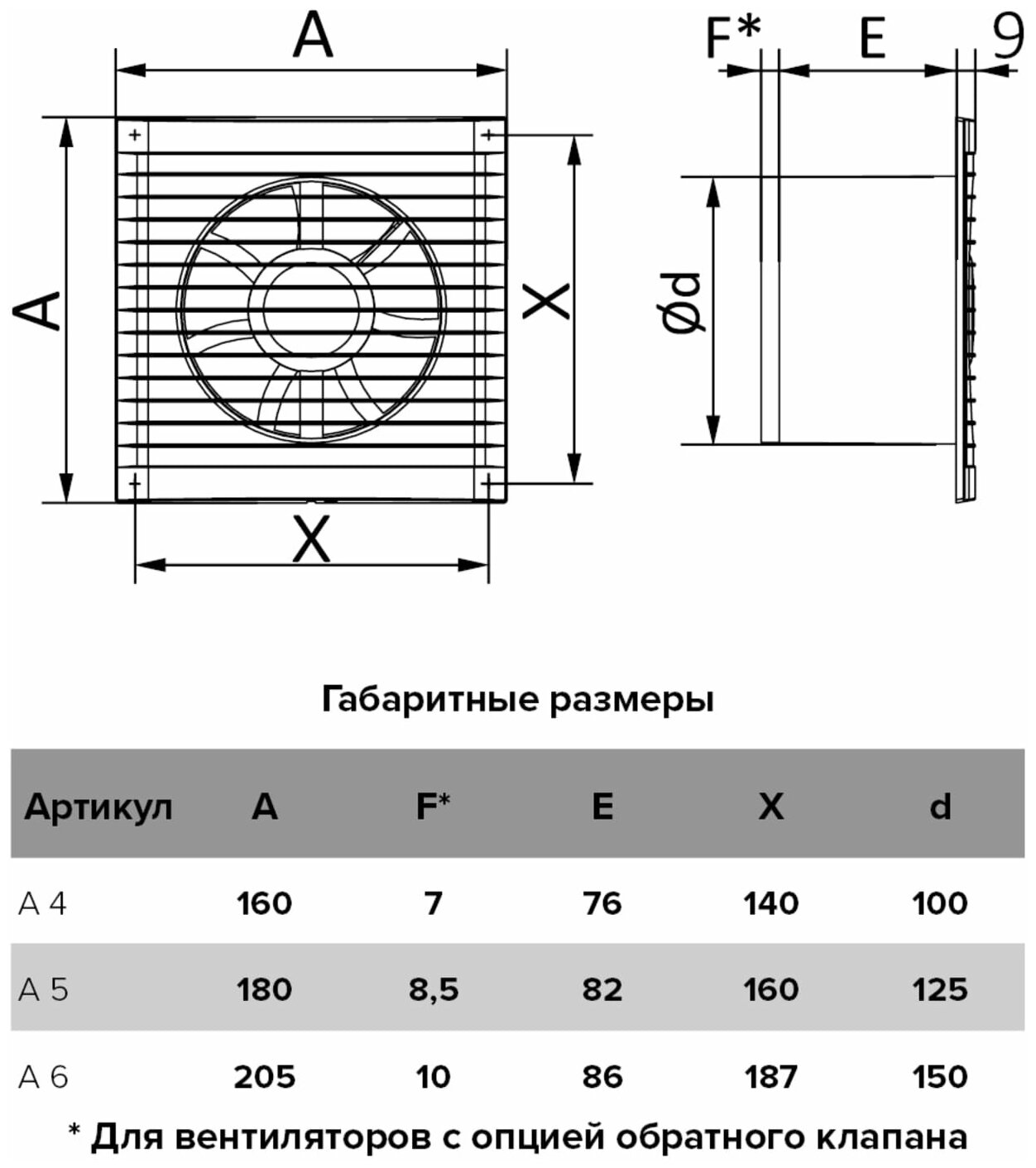 Вентилятор A 5-02 осевой вытяжной с тяговым выключателем D 125