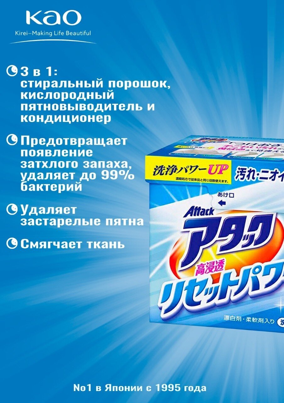 KAO Attack High Penetration Reset Порошок для стирки отбеливающий эффект, аромат цветов коробка 800 гр.
