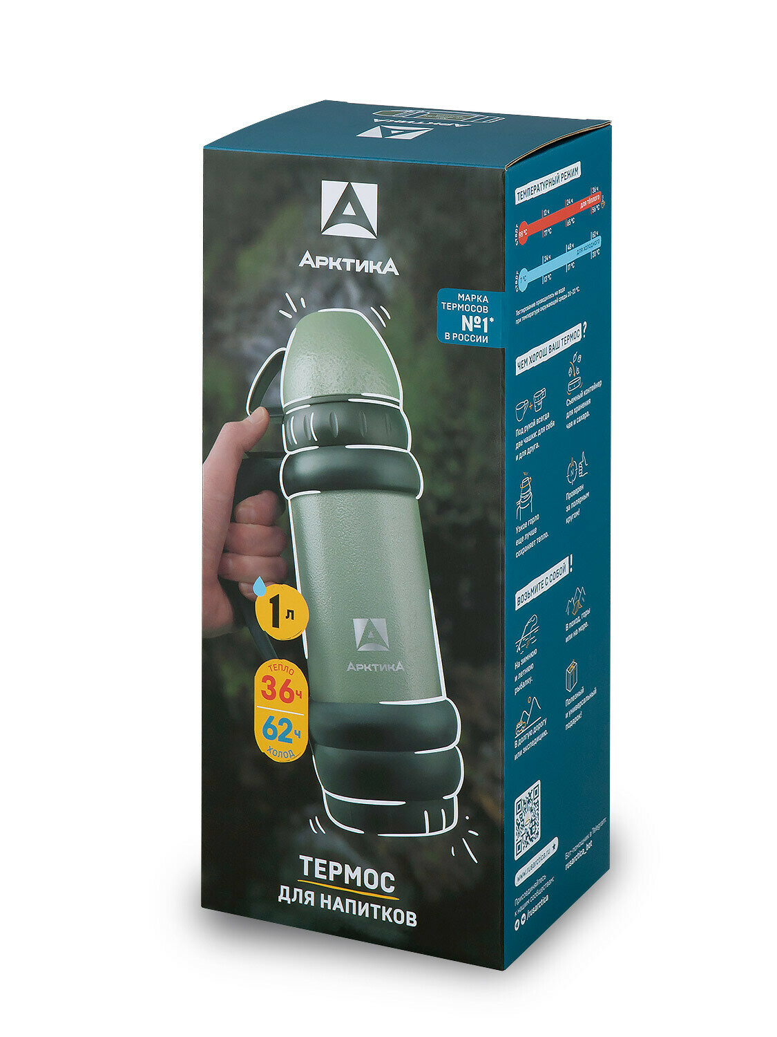 Термос Арктика с узким горлом 109-1000М зелёный, 1л, 36ч