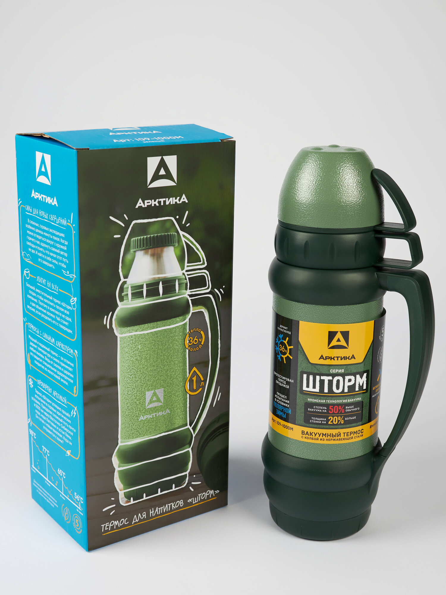 Термос Арктика шторм 109-1000М, 1л. туристический с утолщенными стенками