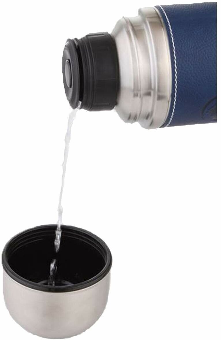 Термос для напитков 0,7 л. с кожаной вставкой на корпусе Арктика 108-700 пробка с кнопкой