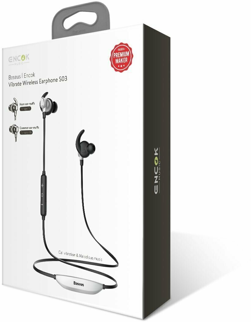 Наушники-вкладыши BASEUS S03 Encok, с шейной дугой, беспроводные, BT, серебристый с черным NGS03-01 интересное: