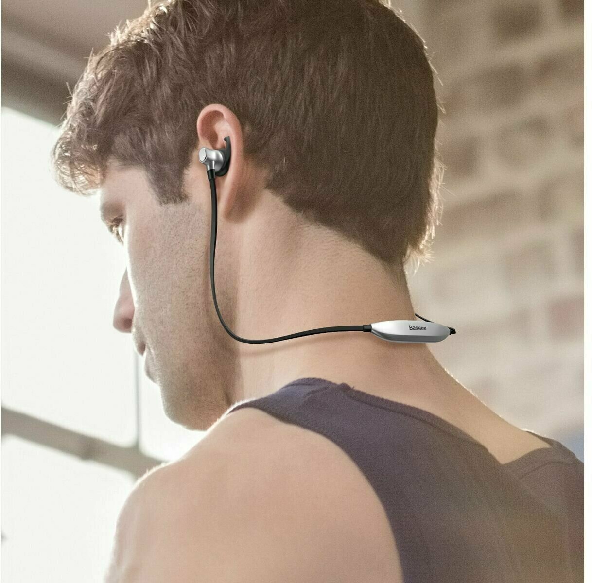 Наушники BASEUS S03 Encok, с шейной дугой, беспроводные, BT, серебристый с черным