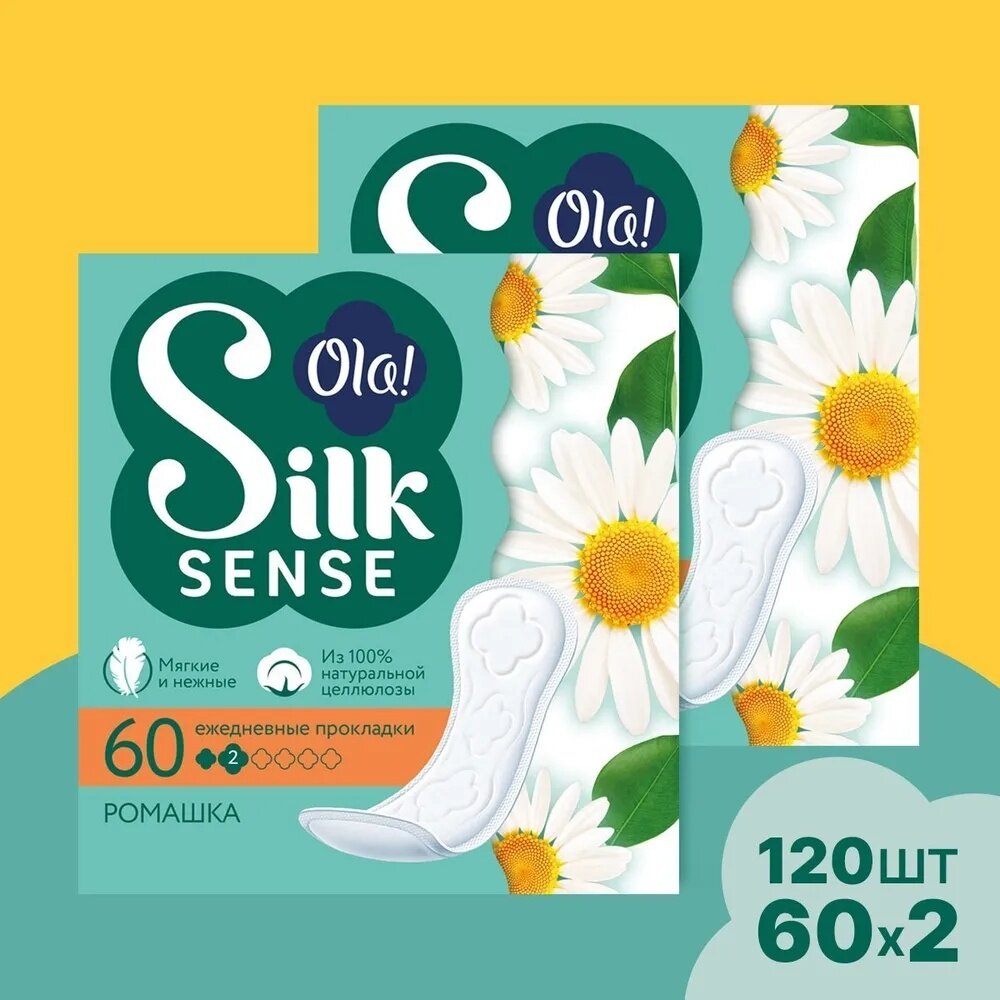 Комплект Ola! SILK SENSE DAILY DEO Прокладки женс. гигиен. впит. Ромашка 60 шт/упак.х2 упак.