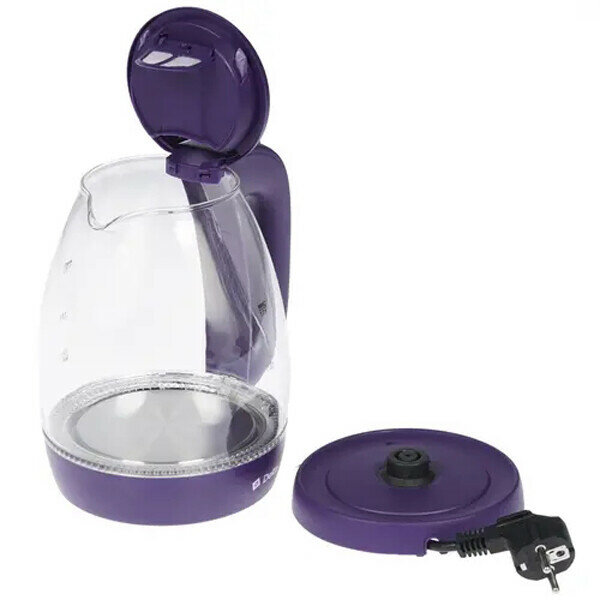 Электрочайник DELTA DL-1203, корпус из жаропр. стекла, фиолетовый: 2200 Вт, объем 1,7 литра