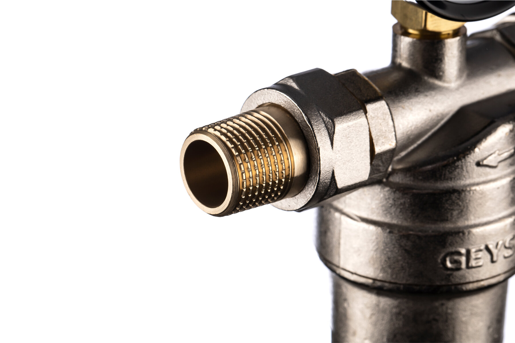 Фильтр механической очистки Гейзер Бастион 7508165201 1/2 муфтовый (НР/НР), латунь, с манометром золотистый Ду 15 (1/2")