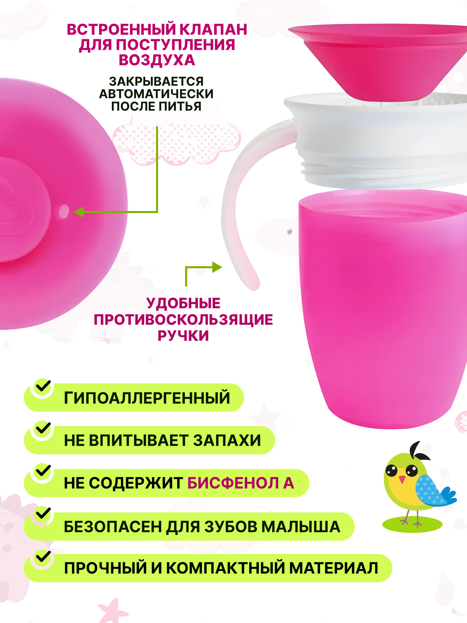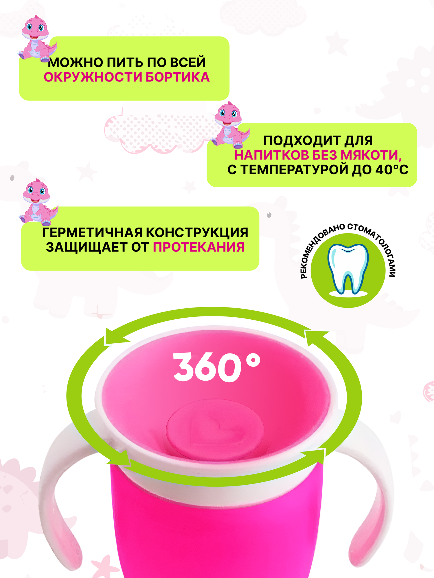 Непроливайка 360° с ручками 207 мл Розовый интересное: