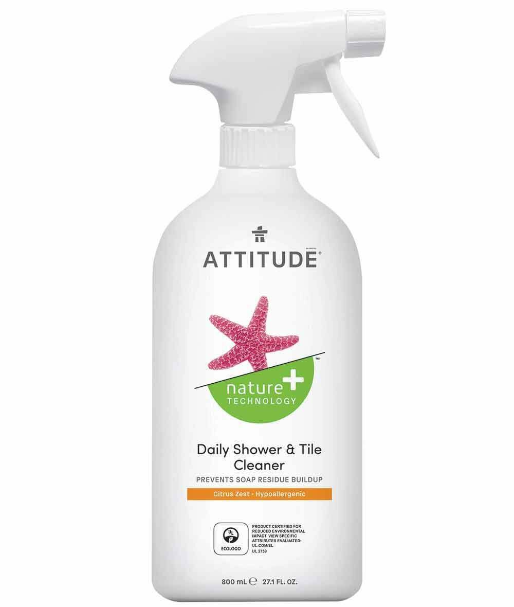 Спрей Attitude для ежедневного ухода за плиткой и душевой кабиной, гипоаллергенный, экологичный, Цитрус, 0.8 л (Канада)
