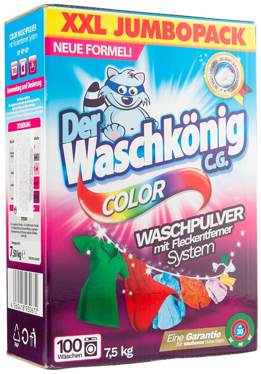 Ниже Вы можете прочитать отзывы на Стиральный порошок Der Waschkonig Color для цветного белья, 7.5 кг, ознакомится с подробными характеристиками, посмотреть интересные обзоры и фотографии на Стиральный порошок Der Waschkonig Color для цветного белья, 7.5 кг.