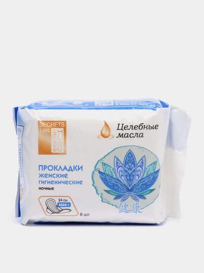 Прокладки женские SECRETS LAN "Целебные масла", ночные, 4 капли, 8 шт