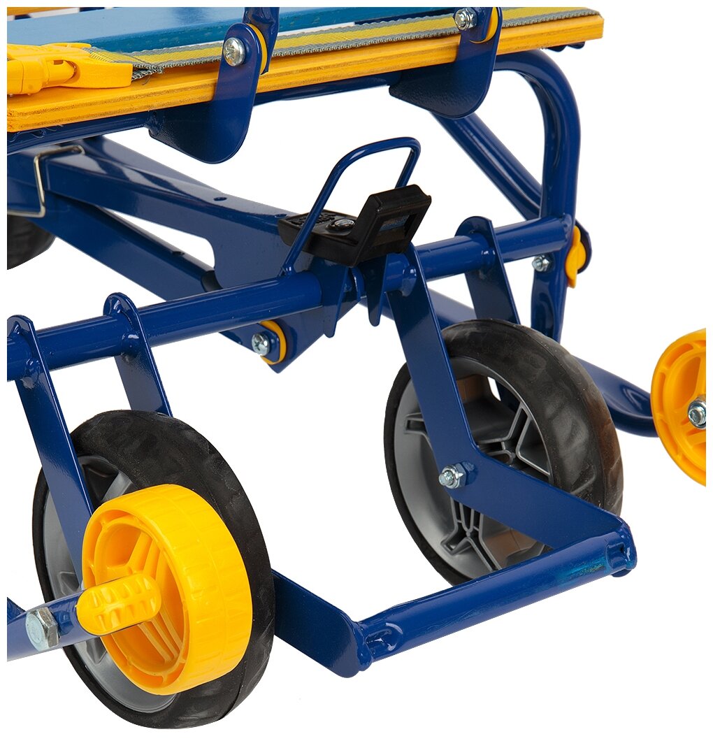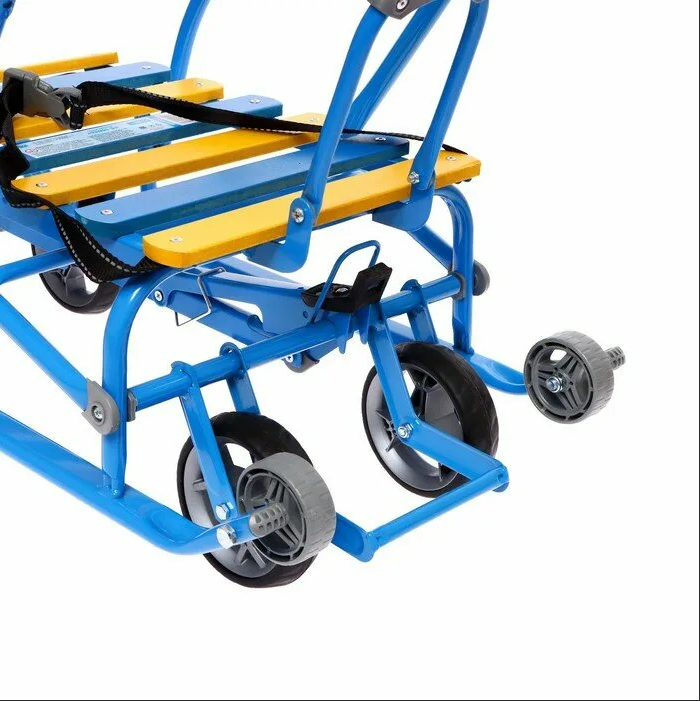 Санки Nikki 3 голубой со складной спинкой и складной ручкой на 4 колесах