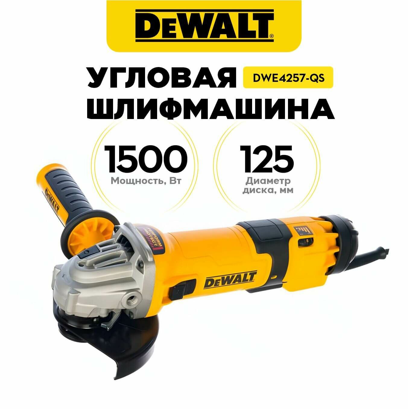 Купить УШМ DeWALT DWE4257, 1500 Вт, 125 мм