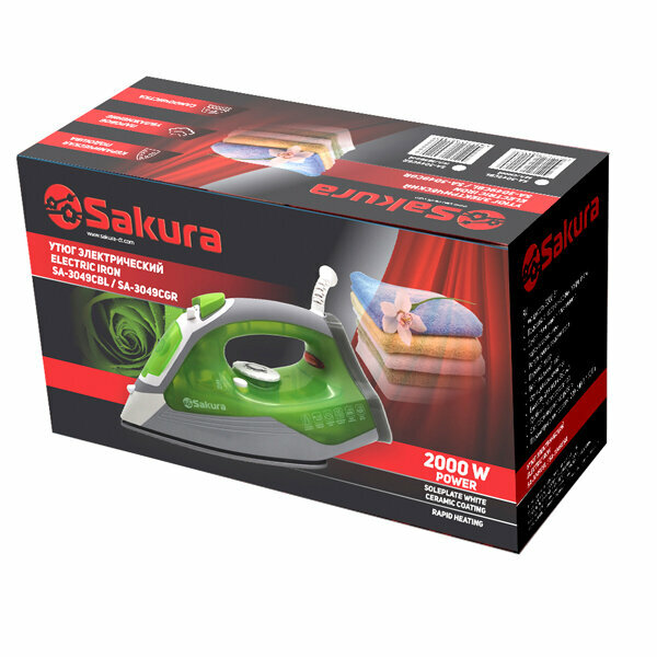 Утюг SAKURA SA- 3049 CGR (2.0 кВт, верт.пар, керам.подошва, самоочистка)