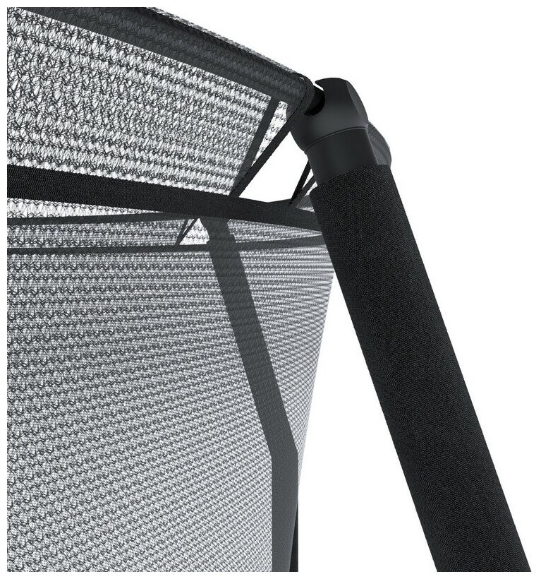 + Абсолютная безопасность за счет сетки и отсутствия каких-любо металлических предметов внутри прыжковой поверхности + Адекватная цена на батут + Нравится дизайн |