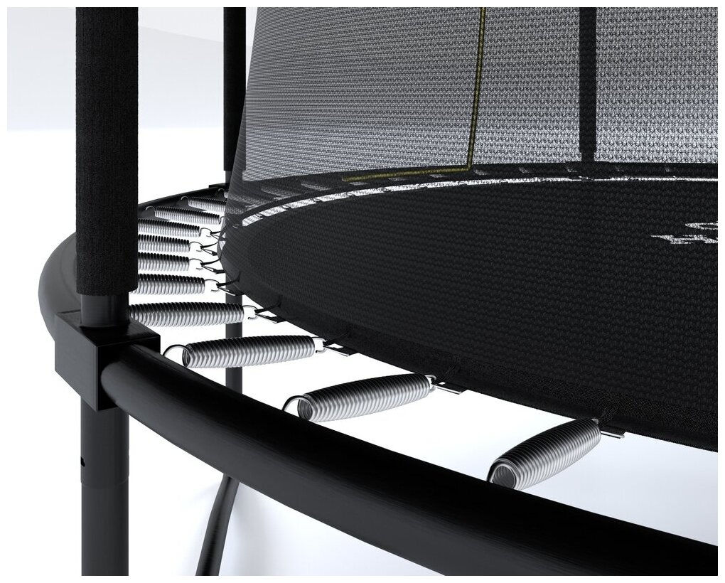 | Плюсы: | Удобный в использовании и сборке, проем в сетке для входа в батут достаточно большой, сама сетка высоко натянута и прочно закреплена, как, собственно, и весь батут. |