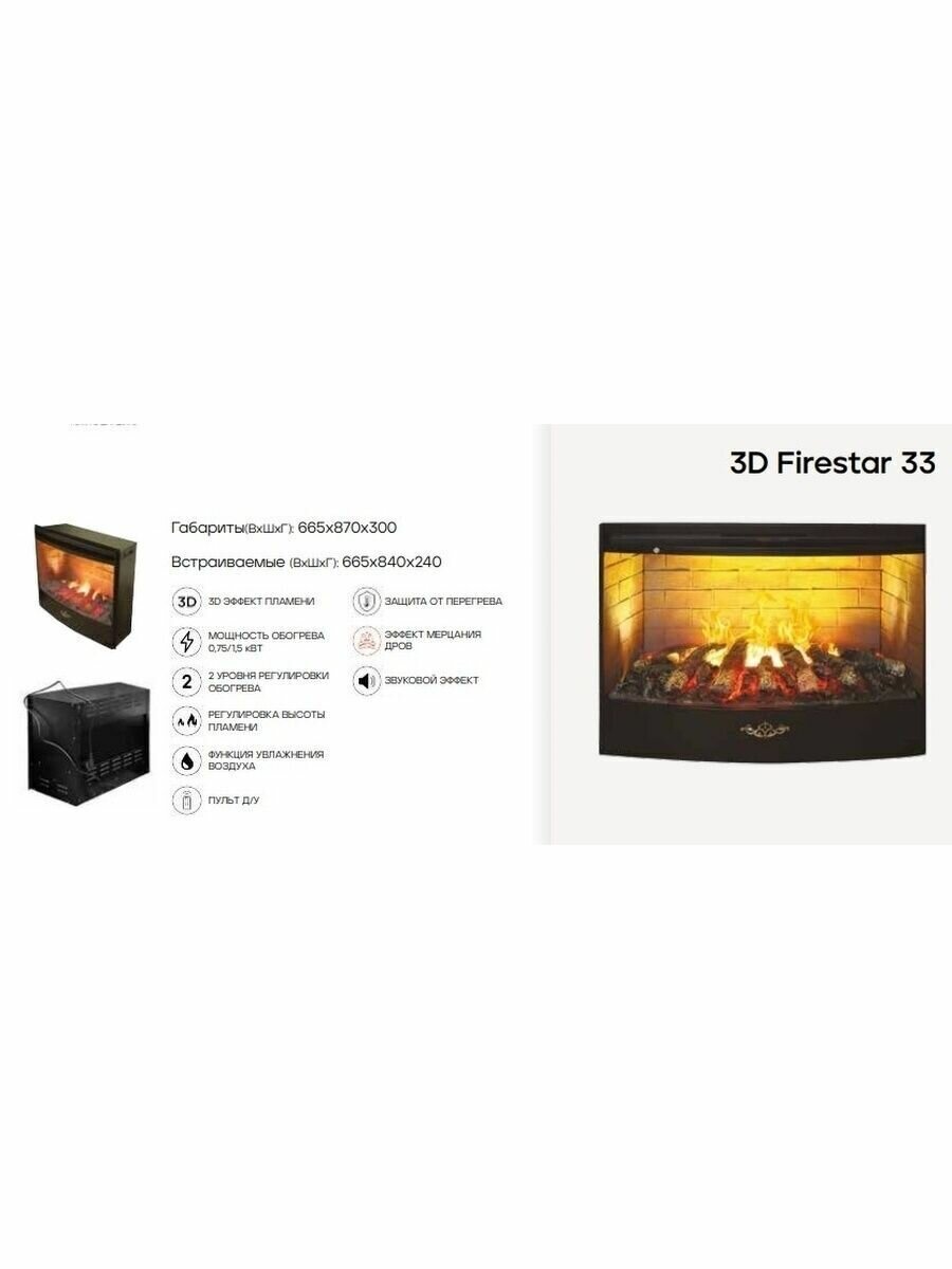 Электрокамин RealFlame Weston 33 WT-P591/P511 с очагом 3D Firestar 33 интересное: