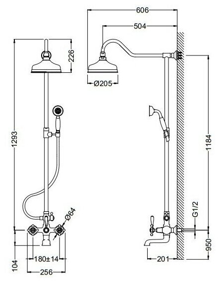 | Дополнительная информация | высота стойки для душа: 1293 мм; диаметр верхнего душа: 205 мм |