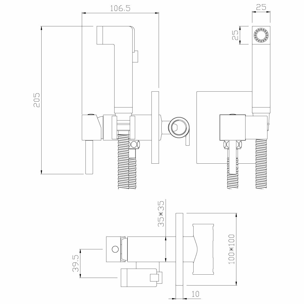 Гигиенический душ Rossinka X25-53 со смесителем, встраиваемый, хром