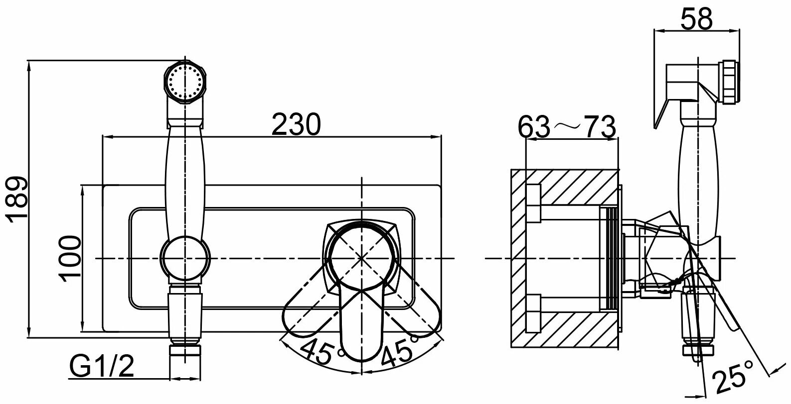 Смеситель с гигиеническим душем встраиваемый DK Rhein Marx (DA1394501)