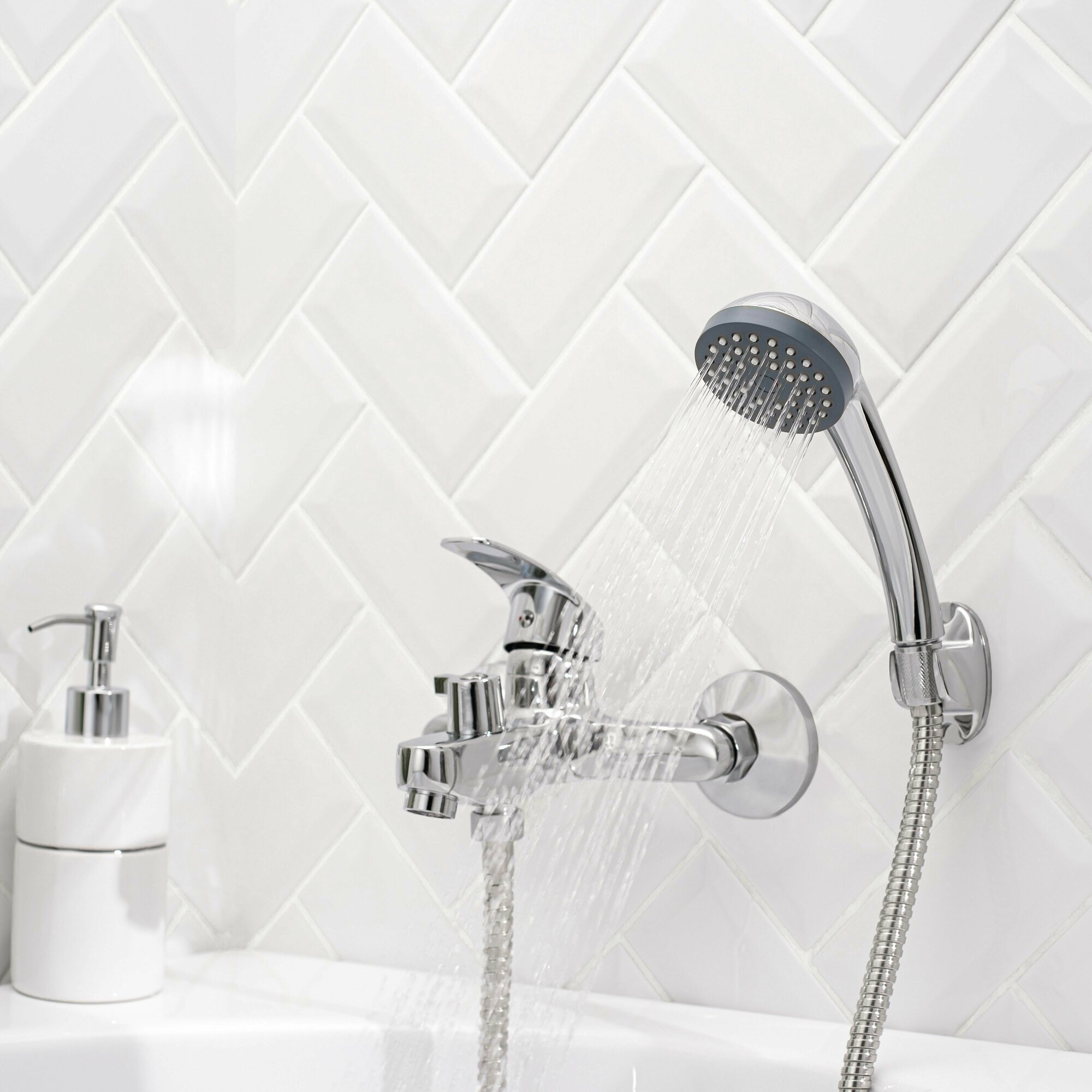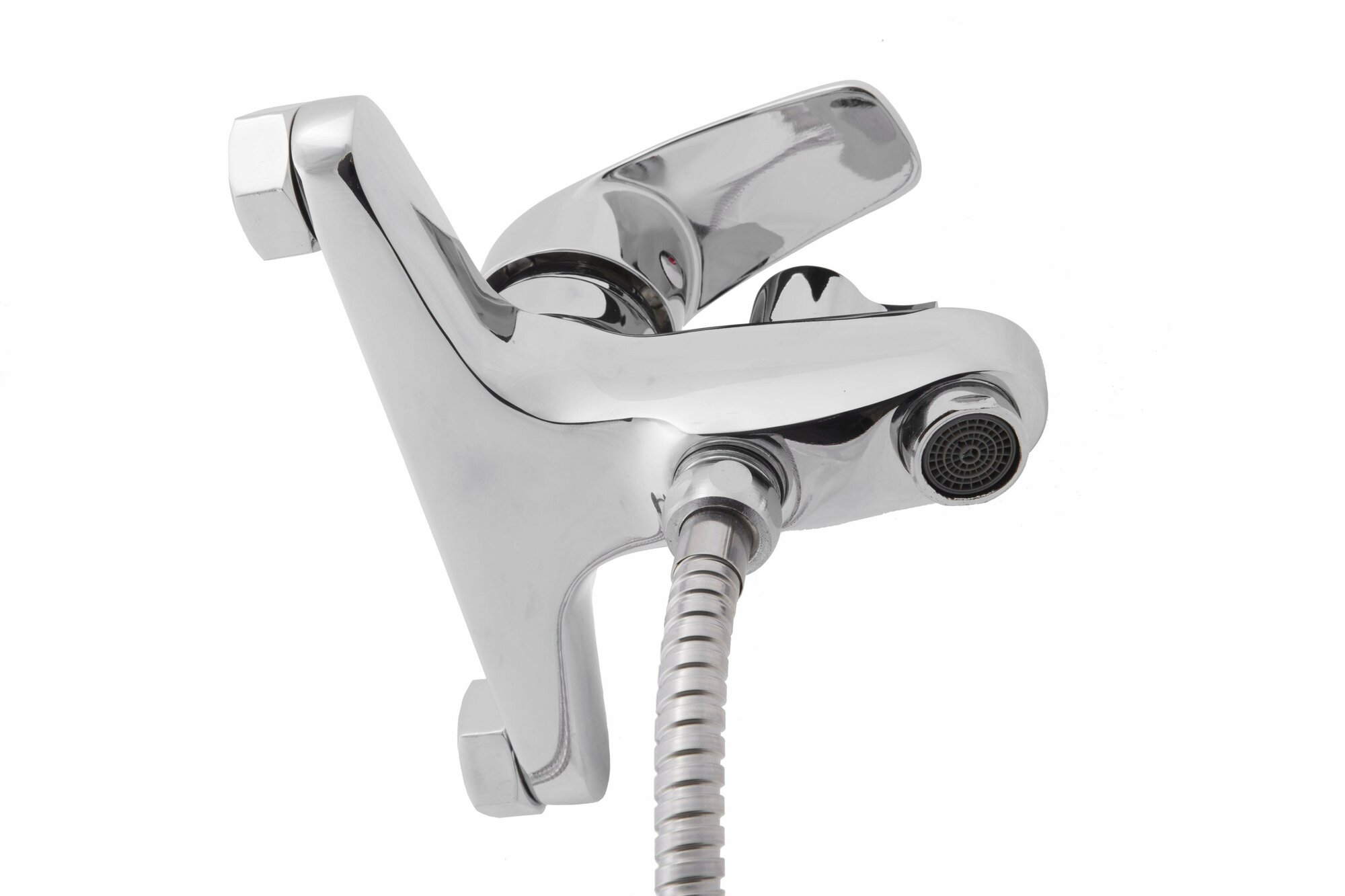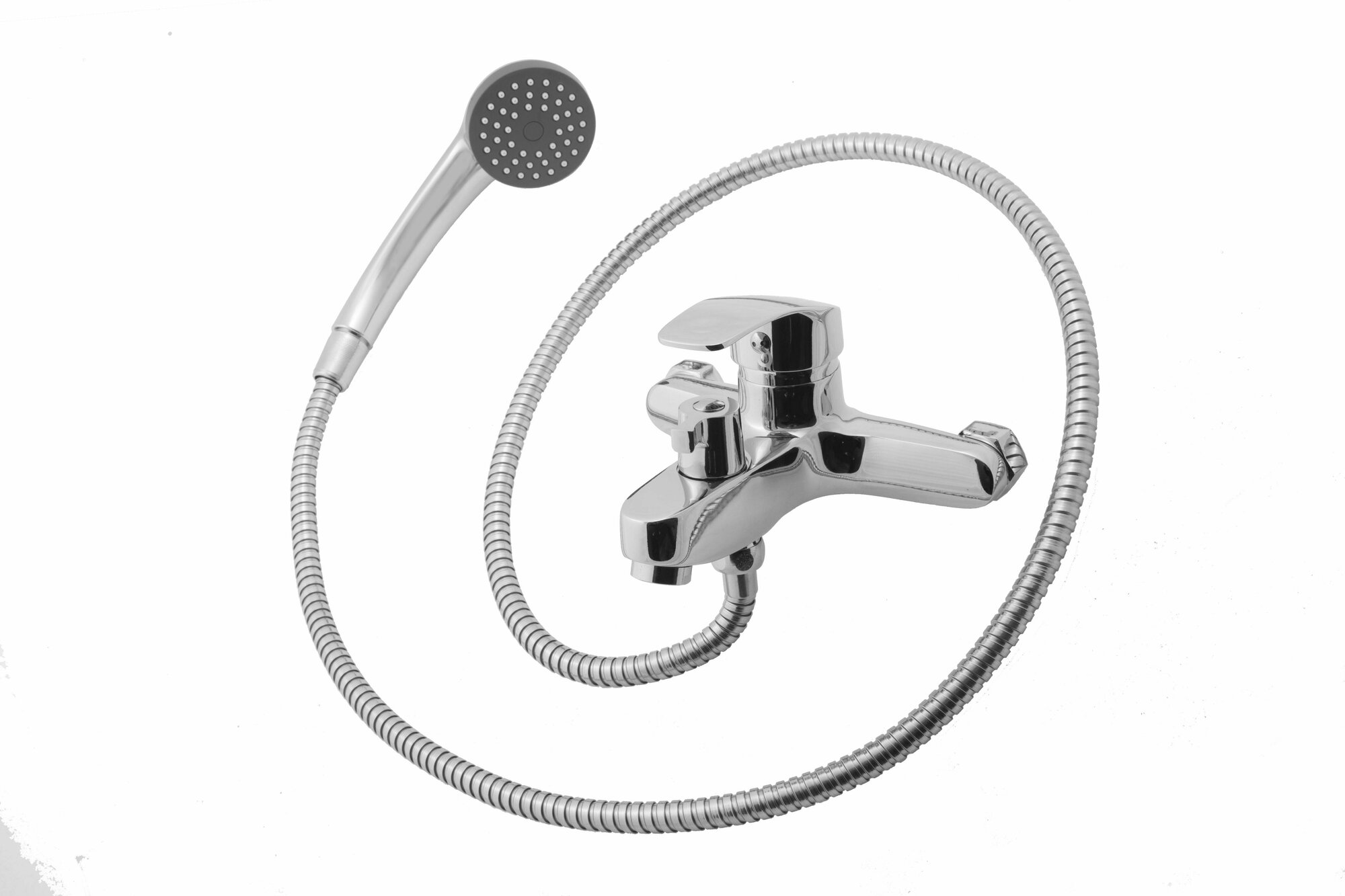 Смеситель для ванны, РМС SL85-009E, короткий монолитный излив, с лейкой и шлангом, гарантия