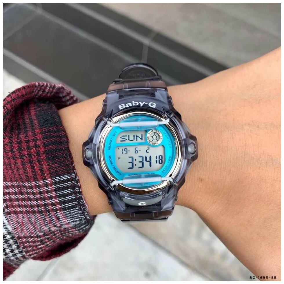 Наручные часы CASIO BG-169R-8B кварцевые, будильник, записная книжка, хронограф, секундомер, таймер обратного отсчета, водонепроницаемые, противоударные, подсветка дисплея, прозрачный