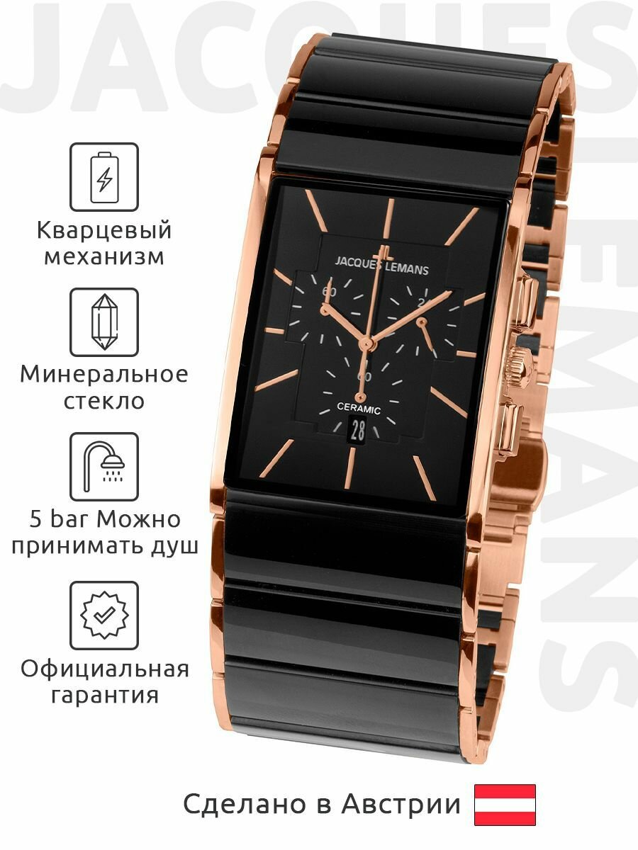 Австрийские кварцевые часы Jacques Lemans Dublin 1-1941B на стальном браслете, керамика, с водозащитой 5 бар и международной гарантией от производителя