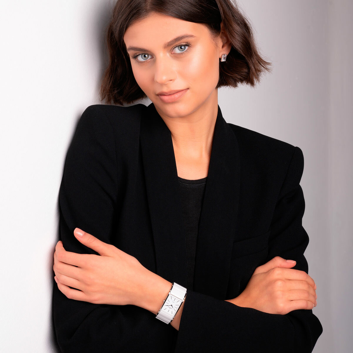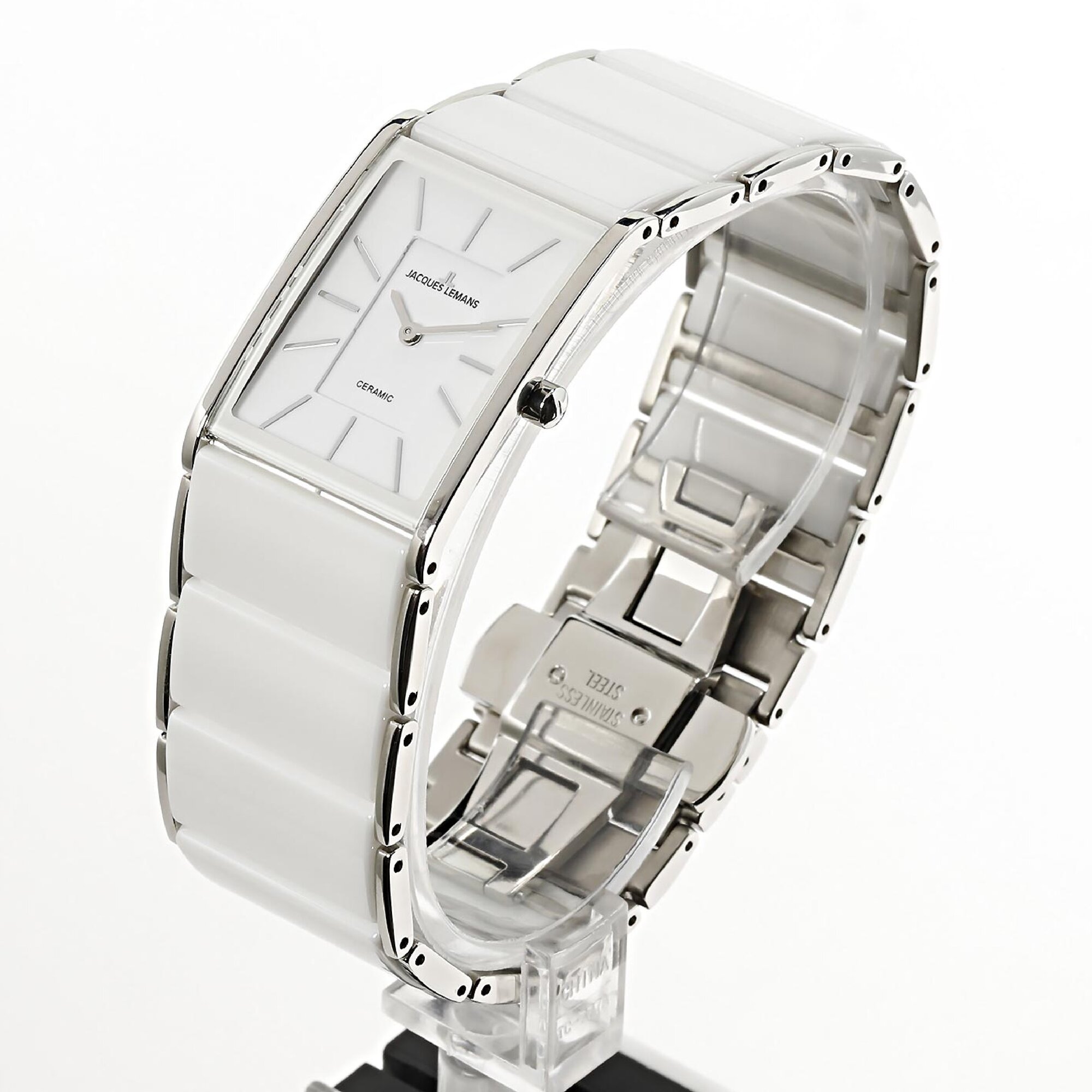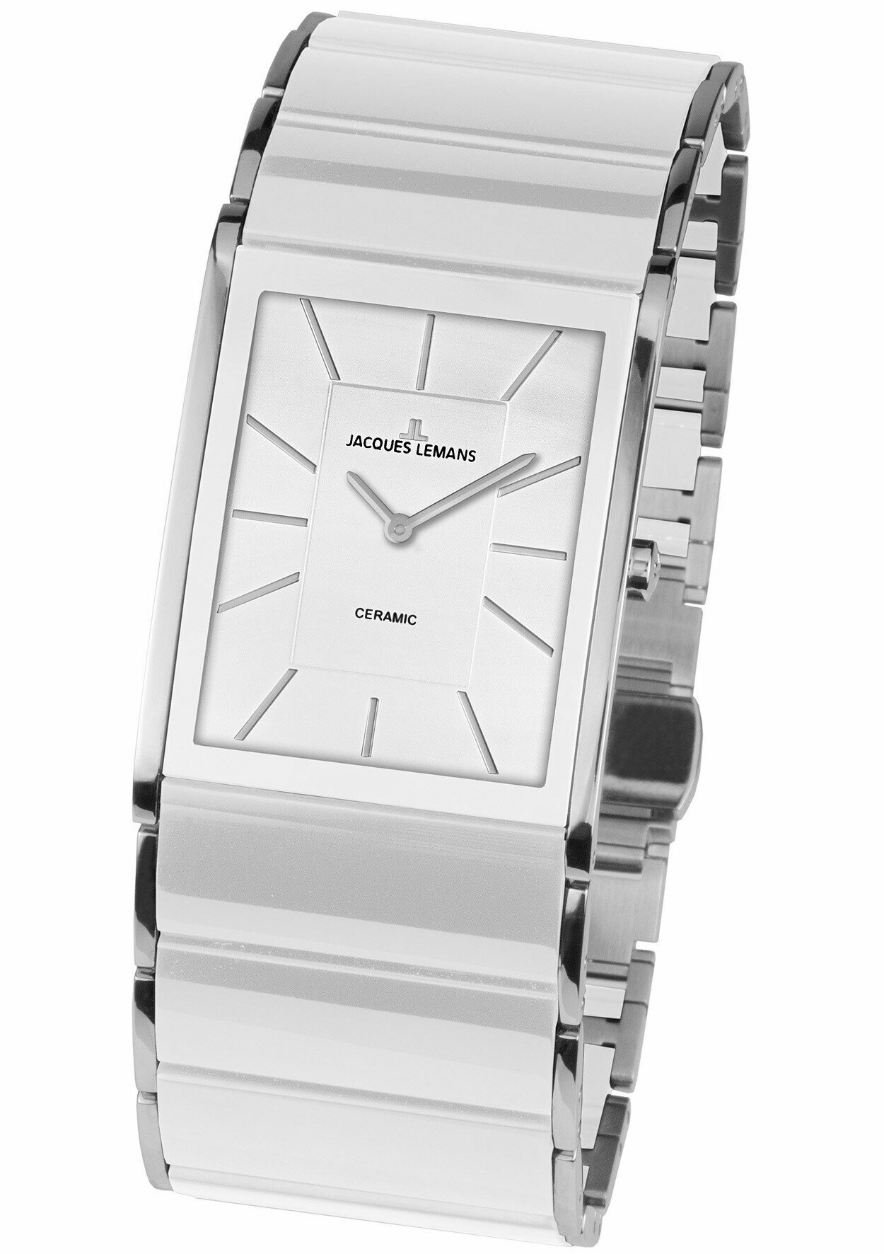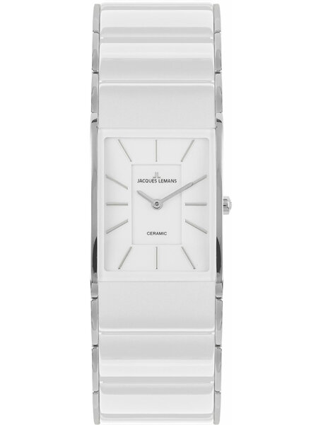 Наручные часы Jacques Lemans 1-1940B, женские прямоугольные кварцевые керамические часы Жак Леман на комбинированном браслете (сталь и керамика)