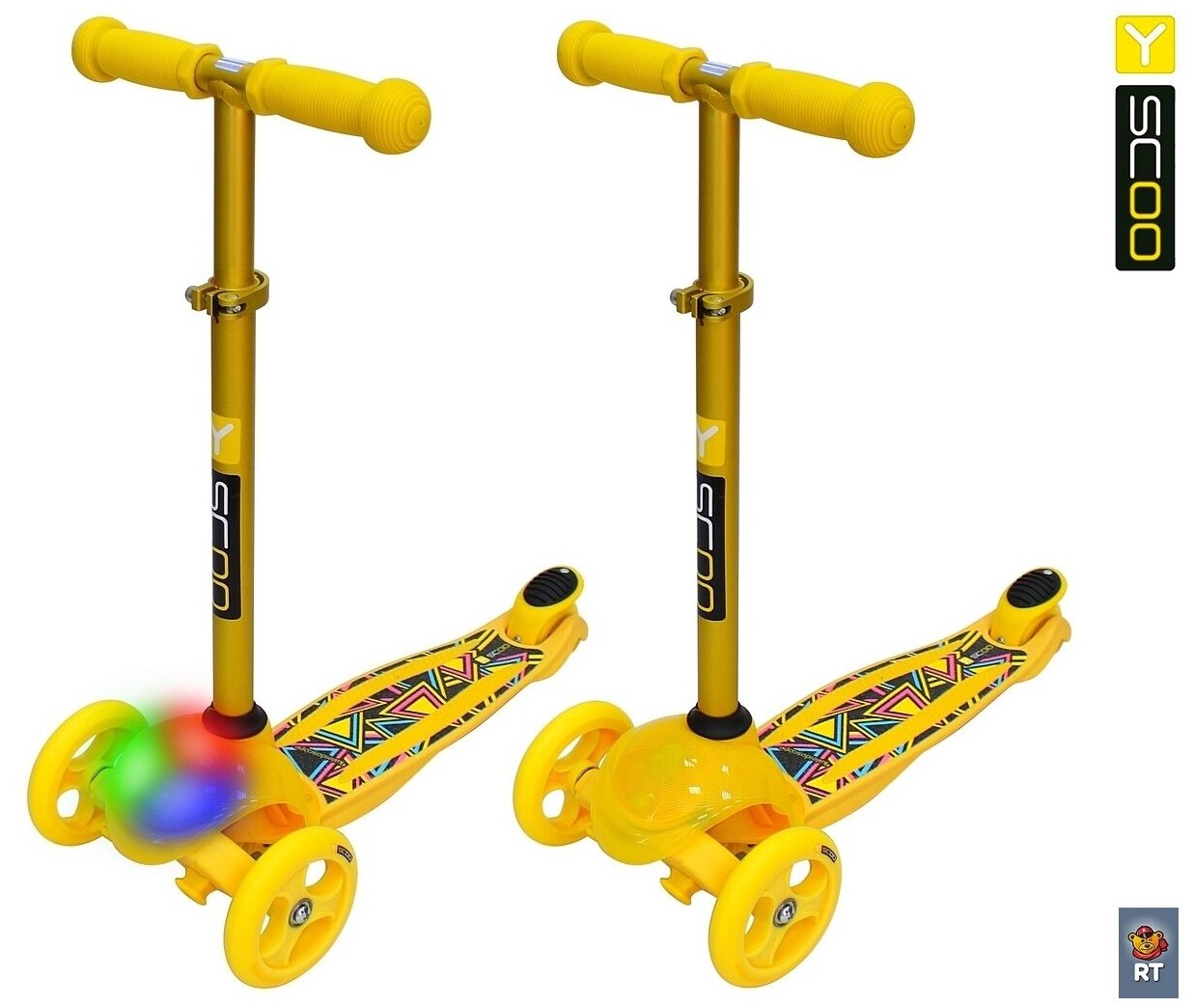 Купить Самокат 3-х кол. Y-SCOO RT TRIO DIAMOND 120 Kaleidoscope светящаяся платформа yellow
