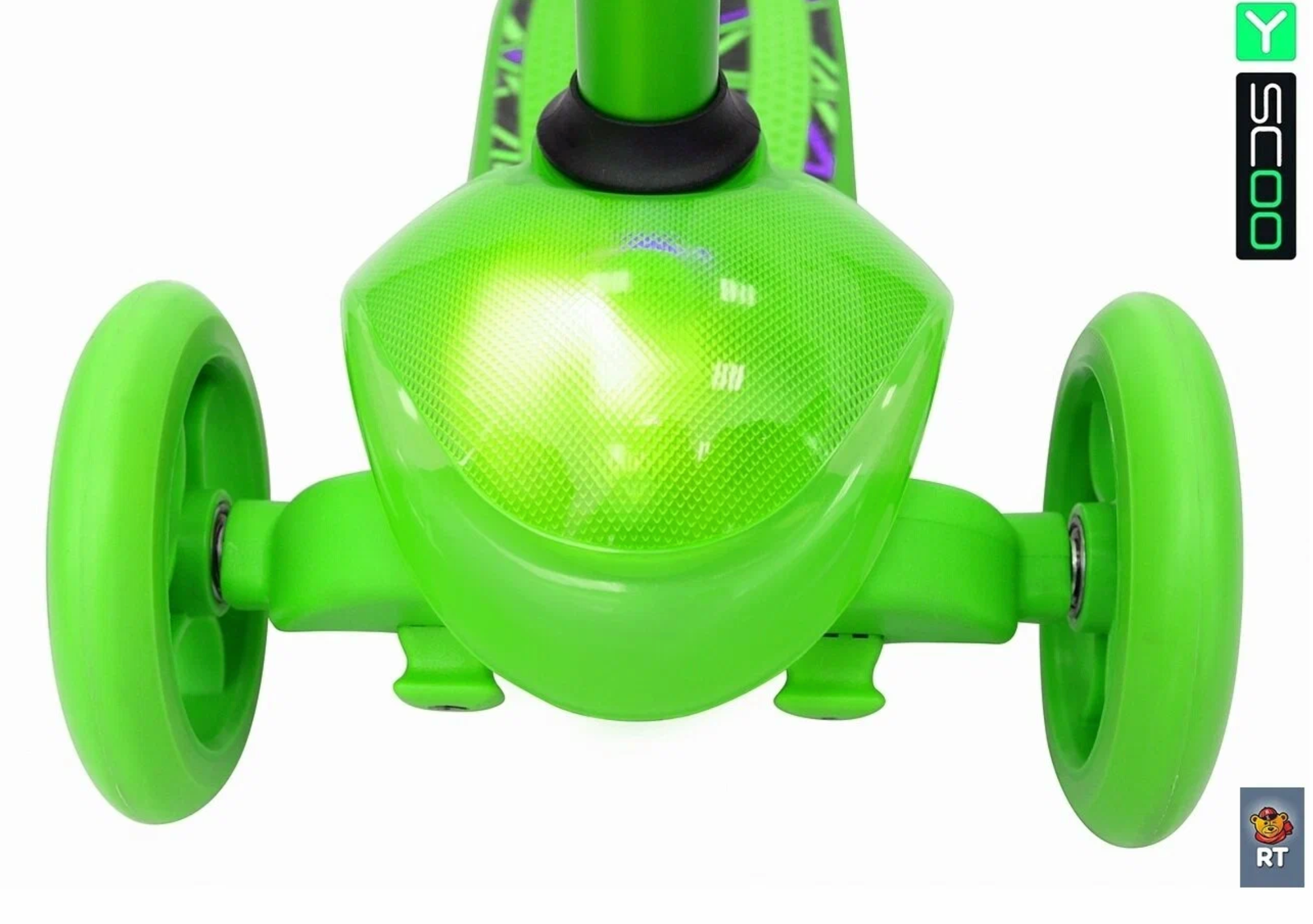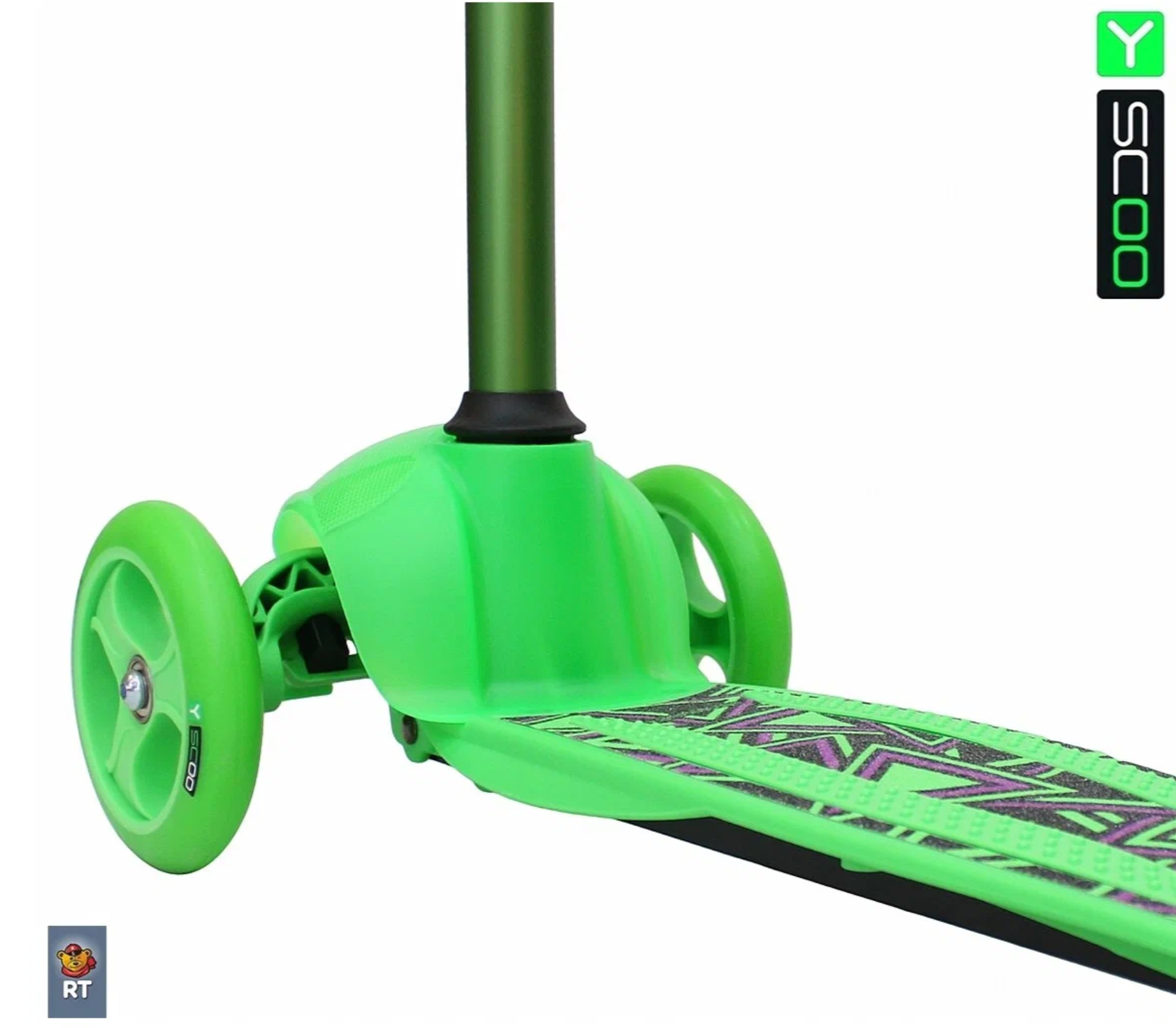 Купить Самокат 3-х кол. Y-SCOO RT TRIO DIAMOND 120 Kaleidoscope светящаяся платформа green