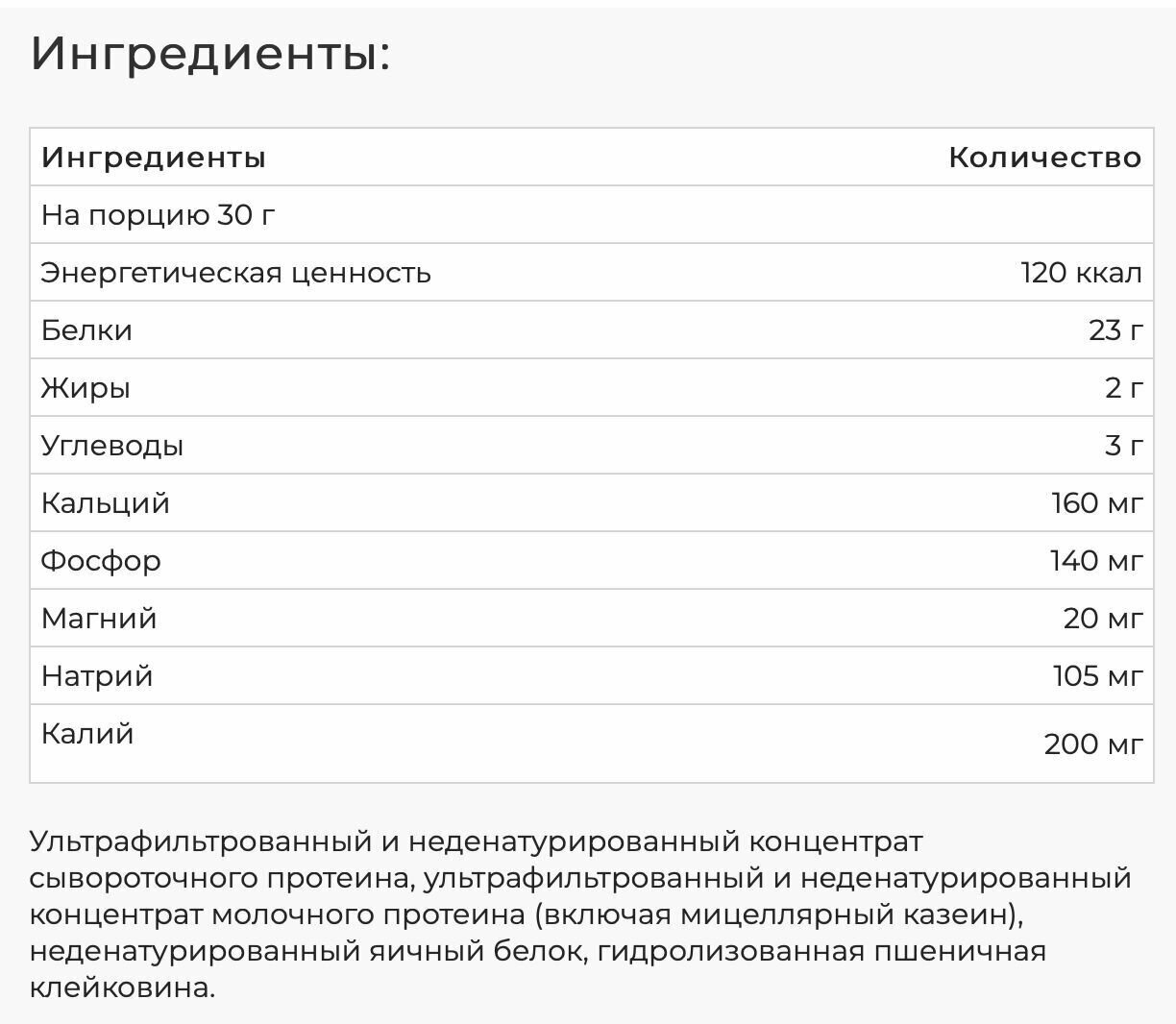 Содержит весь необходимый аминокислотный спектр Плюсы: цена, вкус, консистенция |