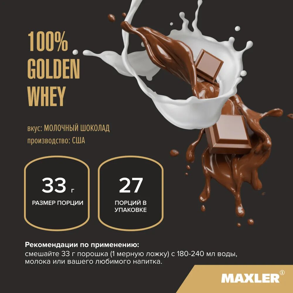 Сывороточный протеин 100% Golden Whey Maxler 908 г, 27 порций (Молочный шоколад)